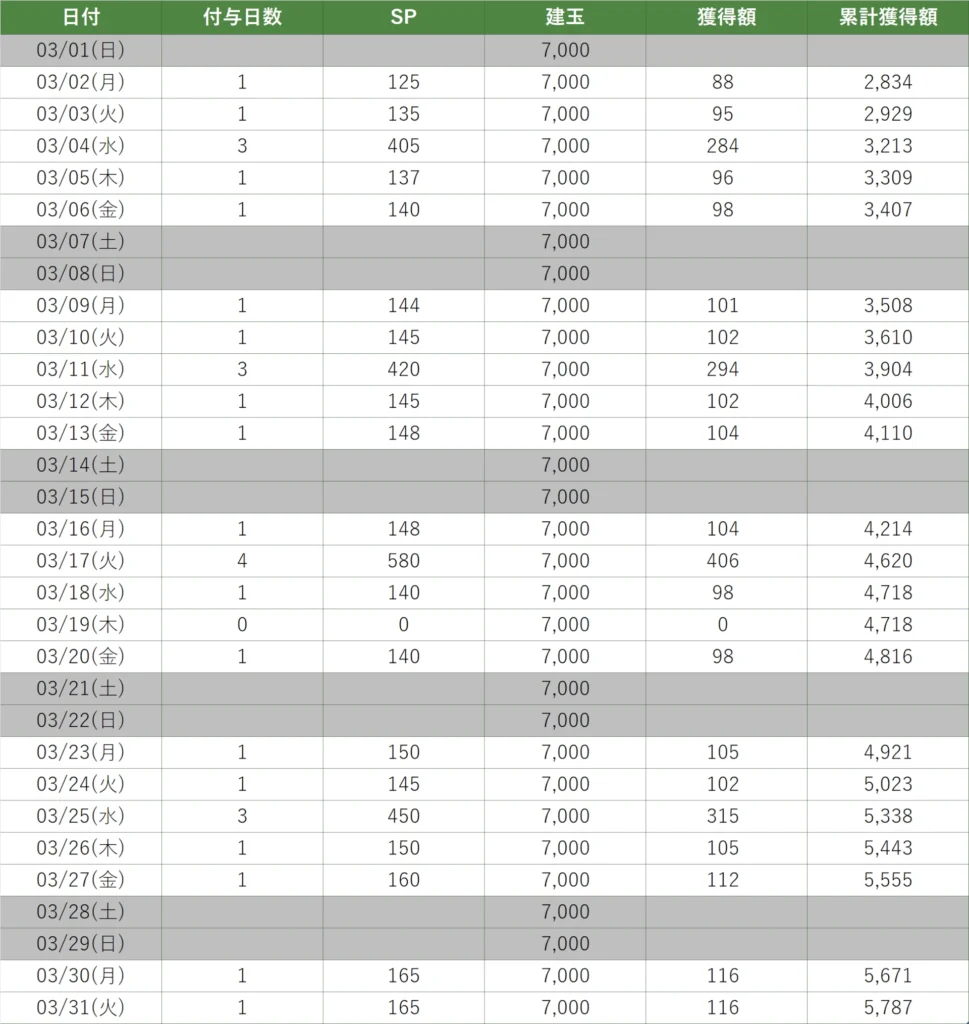 2026年の累計獲得額 : 5,787円(2月分は除く)