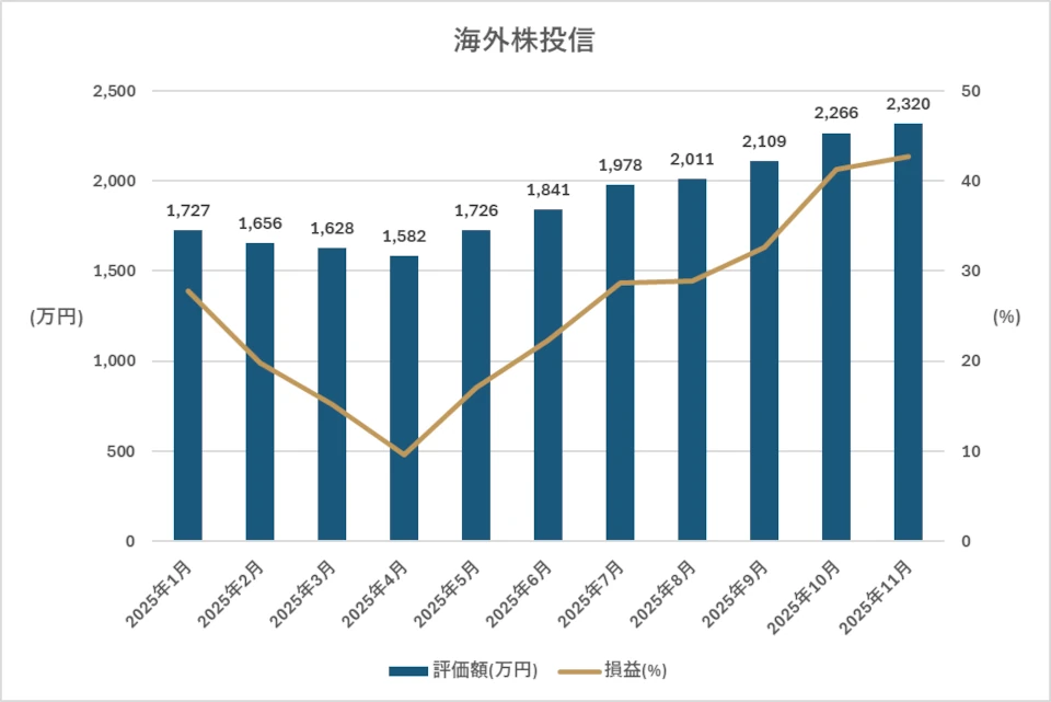 NISA・iDeCo・特定口座を利用し、海外株投信に毎月積立を継続中。