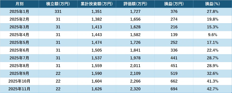 本記事では、当月の運用成績と積立状況を記録する。