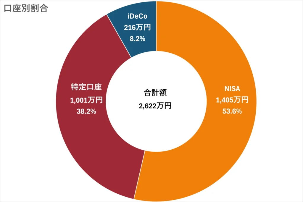 2025年始からの積立額、評価額の推移、口座別割合をまとめた