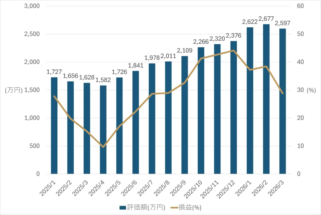 長期的な資産形成を目的とし、売却を行わず淡々と買い増しを続けている。
