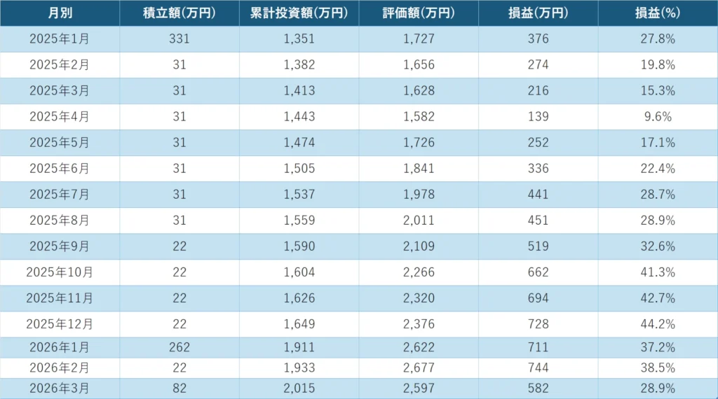 本記事では、当月の運用成績と積立状況を記録する。