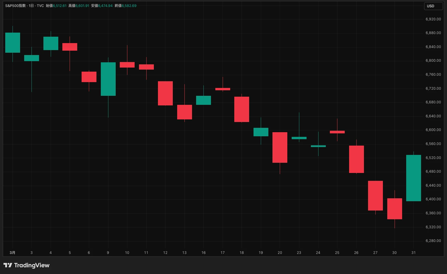 2026年3月のS&P500のチャート